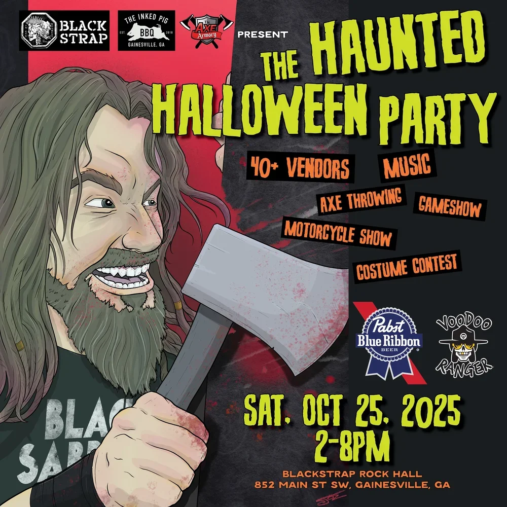 Blackstrap Haunted Halloween Party Saturday, October 25, 2025 2:00 PM 8:00 PM Blackstrap Rock Hall 852 Main Street Southwest Gainesville, GA, 30501 United States (map) Google Calendar ICS
